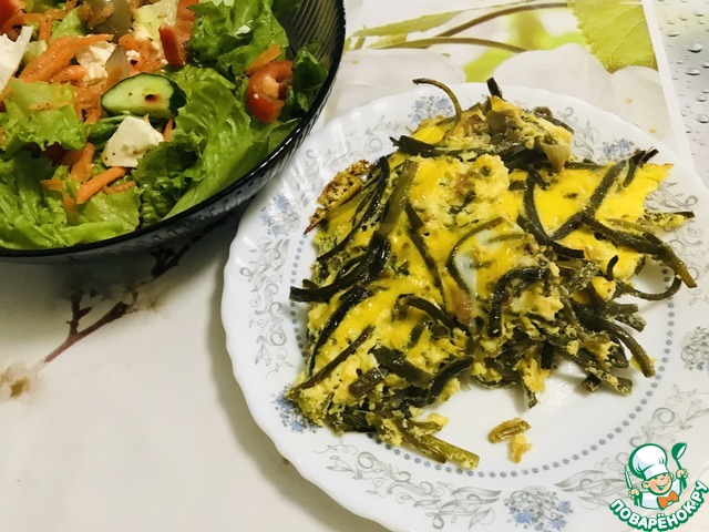 Чесночные стрелки может ещё не все срезали, или у кого-то остались для заготовки после обрезки. Попробуйте этот омлет! Это вкусно! Ярко-выраженного чесночного запаха и вкуса совсем нет. Замечательная еда!
