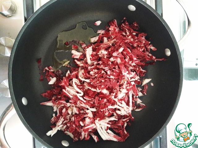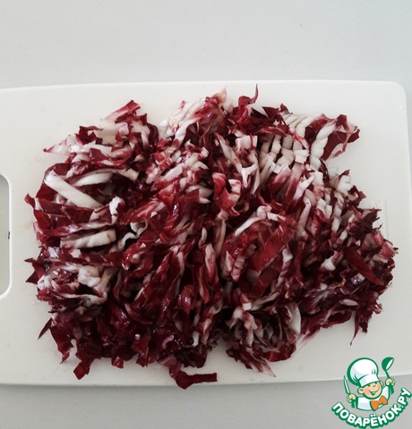 Подготовить салат радиккио: помыть, удалить поврежденные листочки.