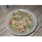 Коррективы: свежий базилик; выкладывать также красиво, как у Вас не стала, просто смешала все в салатнике. Нам понравилось!