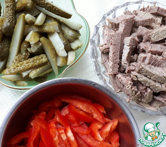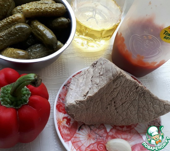 Ингредиенты для «Салат с телятиной, перцем и корнишонами»: