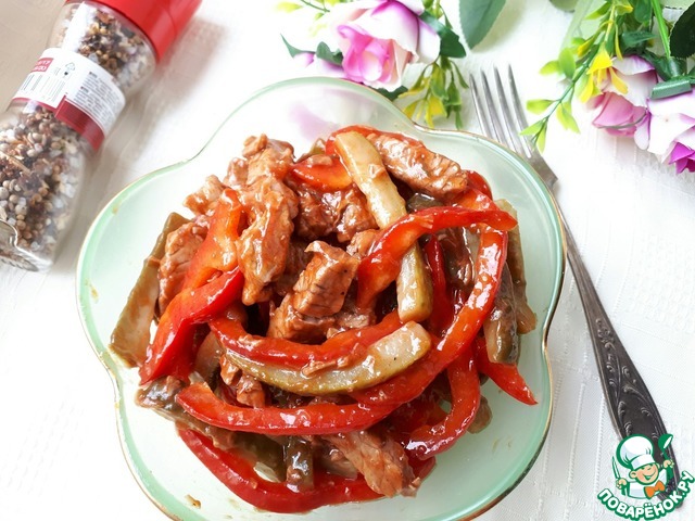 Рецепт «Салат с телятиной, перцем и корнишонами»: