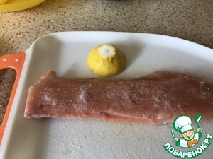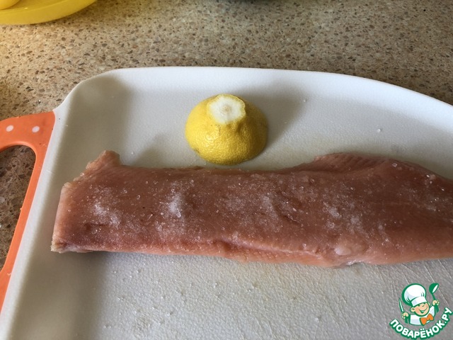 Рыбку солим 1/4 ч. л соли, поливаем соком 1/2 лимона и оставляем мариноваться от 15 до 30 мин!