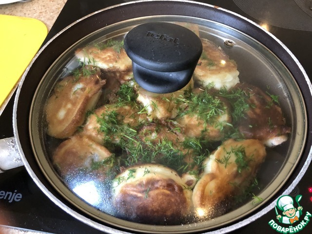 Обжариваем с 2 сторон, посыпаем укропом, чуть кипяточка на дно сковороды и пропариваем под крышкой мин 3. Подробнее смотрите на видео!