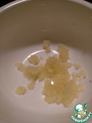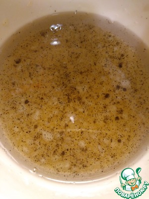 К чесноку добавить масло (можно оливковое заменить любым растительным рафинированным), уксус, мед, перец, тщательно размешать.