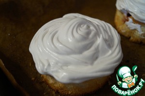 При помощи кондитерского мешка и насадки, отсаживаем сверху белковый крем.