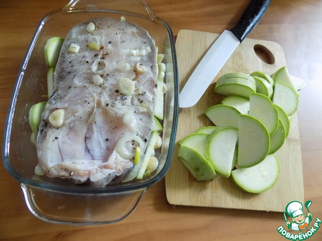 Рецепт «Сом, запечённый с кабачком»: