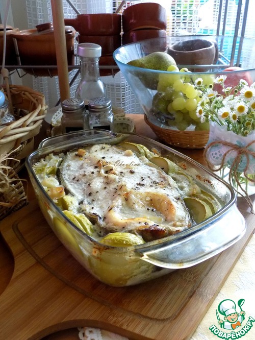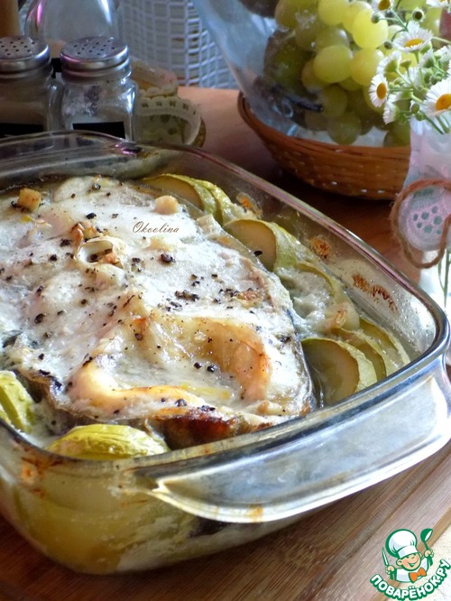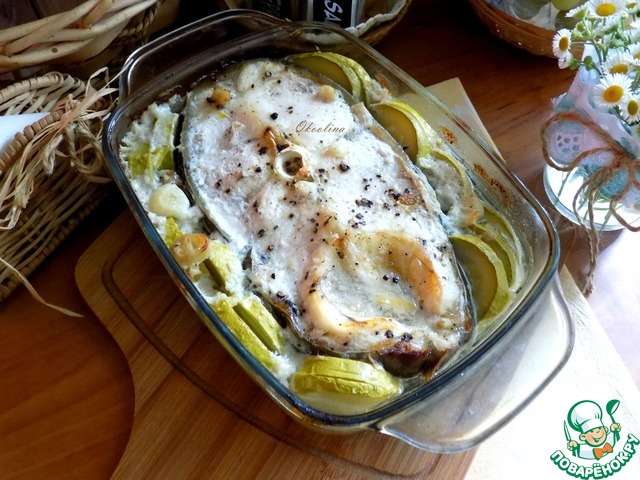 Сом, запечённый с кабачком