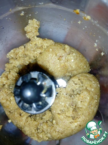 Высыпаем в блендер орехи, размягченное масло и сахарную пудру. Взбиваем всё хорошенечко, чтоб из полученной массы можно было слепить наши конфеты.