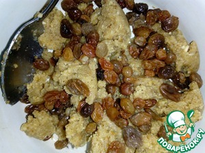 Высыпаем в миску орехи и изюм, хорошо перемешиваем.