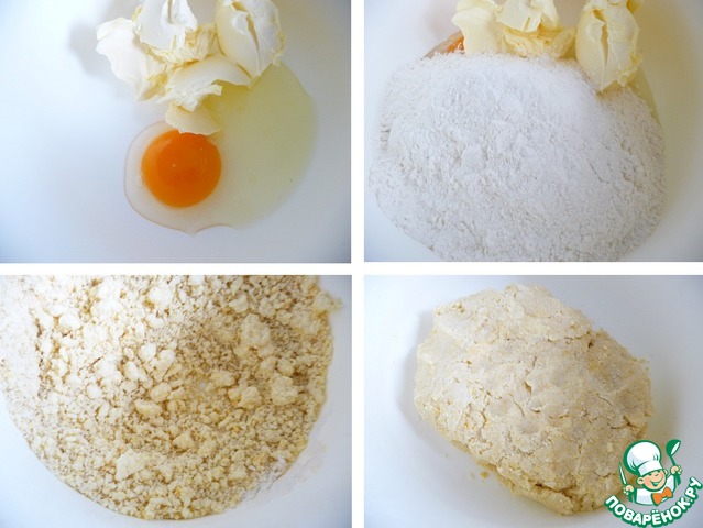 Все смешать миксером. Получилась крошка, вымесить тесто руками. Тесто мягкое.