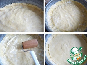 Указательным пальцем, припыленным мукой, прижать тесто по краю формы, чтобы оно немного поднялось вверх.