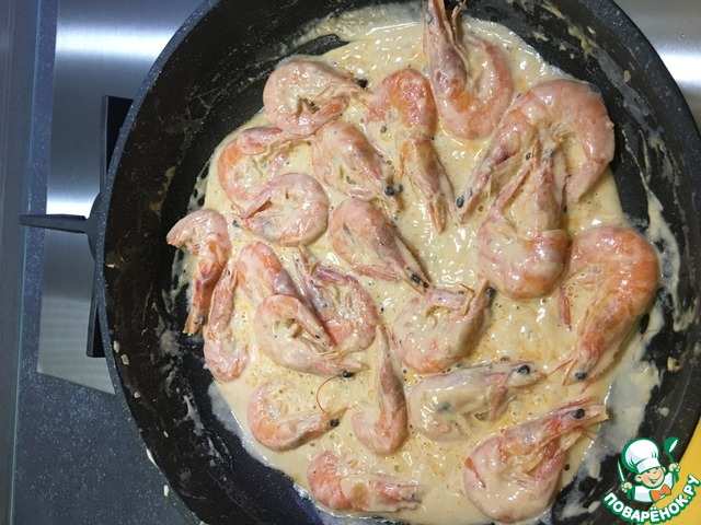 Рецепт «Креветки в чесночно-сливочном соусе»: