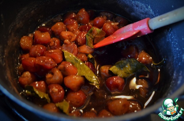 Пока удаляете косточки, сварить сироп из воды и сахара.