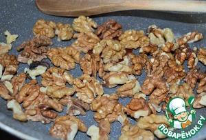 Орехи нарубить кусочками чуть больше косточки черешни.