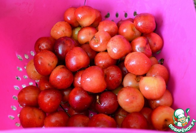 Лучше для этого рецепта взять белую или розовую черешню. -