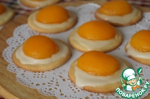Не только весёлое печенье (так как напоминает яичницу), но и вкусное! Хрустящая основа с миндалём, лимонная глазурь и сладкие абрикосы. Очень ярко и по-летнему!
