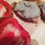 очень легкий,но сытный,мне надолго хватило перекуса ,с помидором,очень вкусно получилось