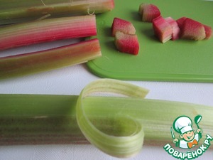 Ревень вымыть, очистить от верхних грубых волокон и нарезать на кусочки толщиной 0.5- 1 см