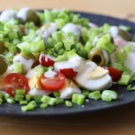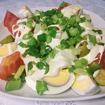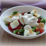 Выкладываем заправку на салат! Посыпаем мелко нарезанным зеленым луком и подаем.