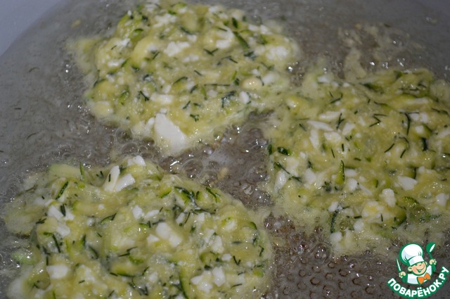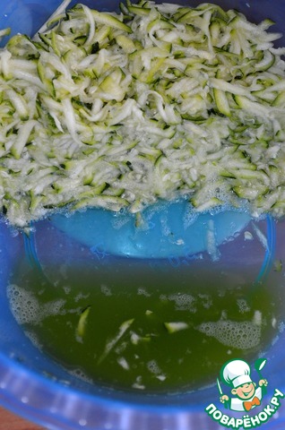 Отжать кабачки от образовавшейся жидкости, сок слить. -