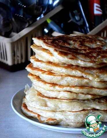 Выкладывать рецепт не планировала, поэтому и фото только готовых лепешек. Готовлю их уже много лет, и предположить не могла, что такой простой рецепт, еще с бабушкиных времен, кому-то в новинку. Есть такие люди, как выяснилось! Переписывала рецепт на листок по просьбам этих самых людей, решила и с поварятами поделиться. Удовольствия от лепешечек - море! Получаются они невесомыми, нежными, хоть губами ешь. И горячие, и остывшие вкусные. Свежести не теряют несколько дней, если доведется готовить их много и впрок. Я подаю их в 2 вариантах: с отварной курицей, помидорами, зеленью, брынзой и кетчупом - это вкуснейший обед-ужин. С творогом, вареньем-медом - шикарный завтрак. Их удобно брать с собой на обед или в дорогу. А младший сынуля уплетает их просто так, без всяких дополнений)