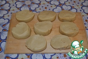 Остывшее тесто разделить на 8 равных частей.