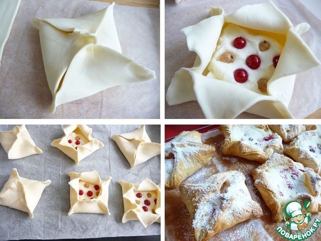 Предлагаю приготовить замечательные слойки с творогом и свежей смородиной. Нежнейшая творожная начинка и кислинка от смородины не оставят вас равнодушными.