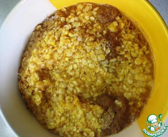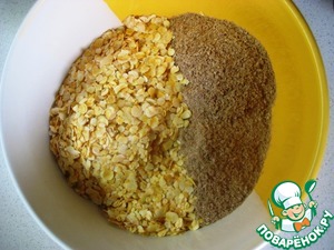Гороховые хлопья и пшеничные отруби соединить в миске.