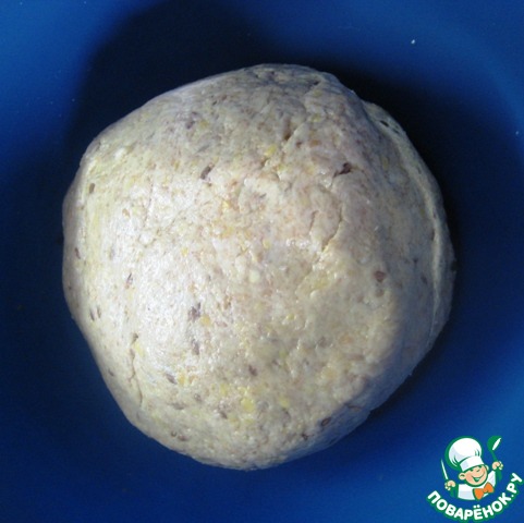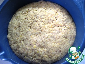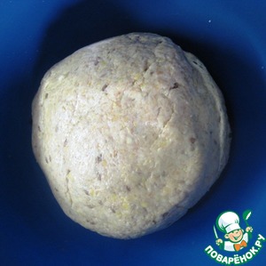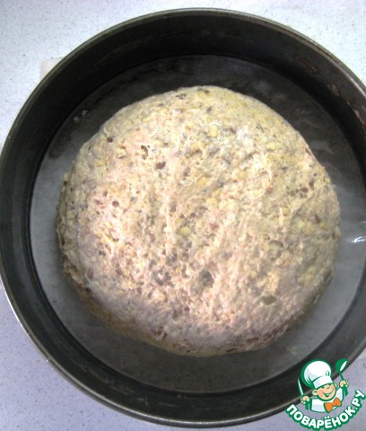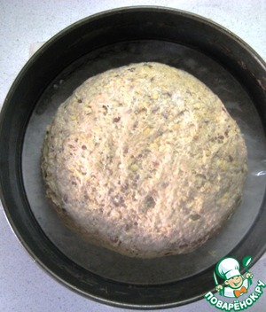 Тесто подошло, обминаем его аккуратно, снова накрываем миску и оставляем для подъёма ещё на 1 час.