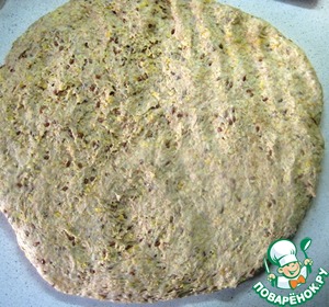 Выкладываем тесто на рабочую поверхность (руки чуть смазываем растительным маслом для удобства работы), растягиваем в пласт.