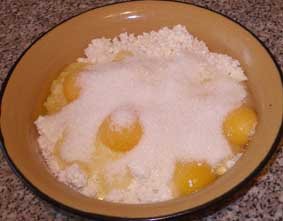 Творог растереть (у меня был домашний из козьего молока, мягкий и без комочков. Я его не растирала).
