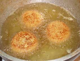 Обжарить в большом количестве жира или масла. Можно использовать фритюрницу.