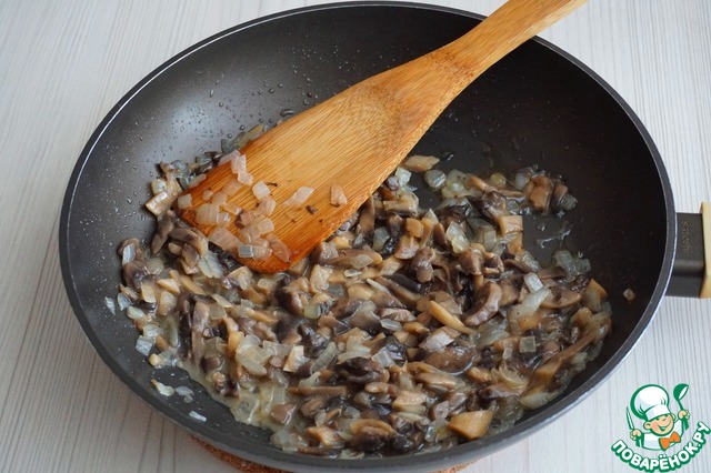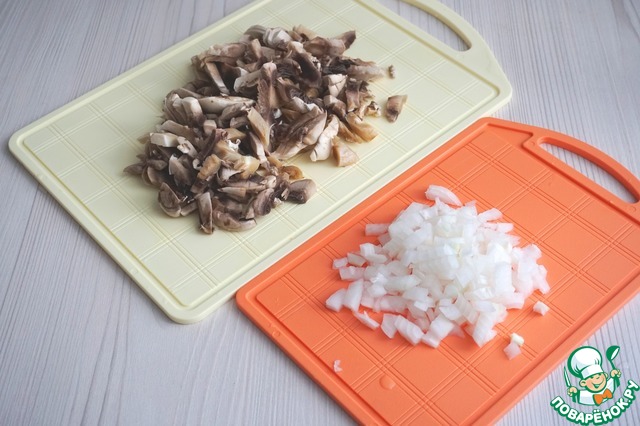 Шампиньоны (6 шт.) порубить кусочками произвольной формы,