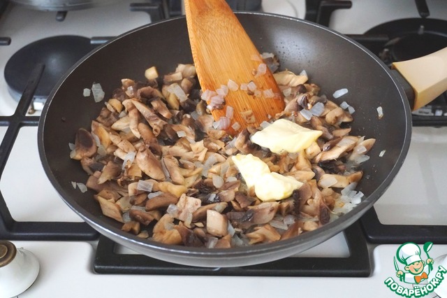 Добавить 50 гр сливочного масла, смесь слегка посолить по вкусу, обжарить в течение 3-5 мин. -