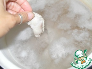 В 1/2 стакана холодной воды взбить 1 яйцо, добавить 1 неполную ч. л. соли, размешать.