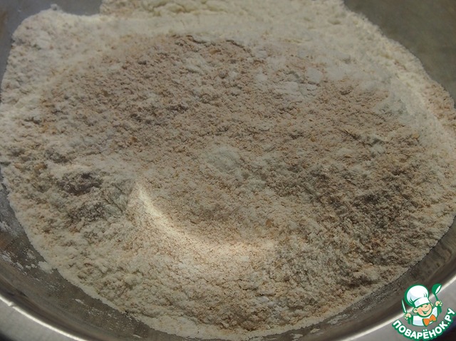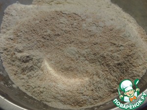 добавить цельнозерновую (шпалдовую) муку, перемешать. -