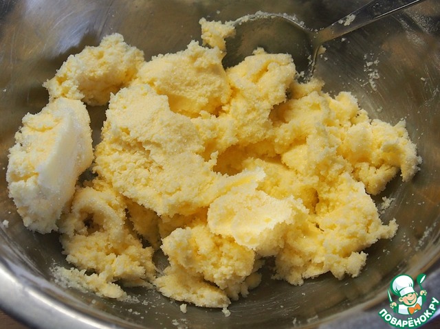 Масло растереть ложкой с сахаром, ванильным сахаром и щепоткой соли.