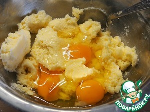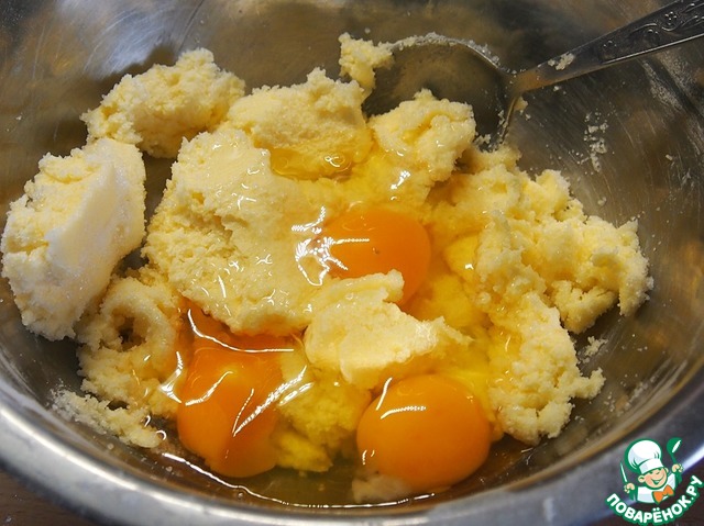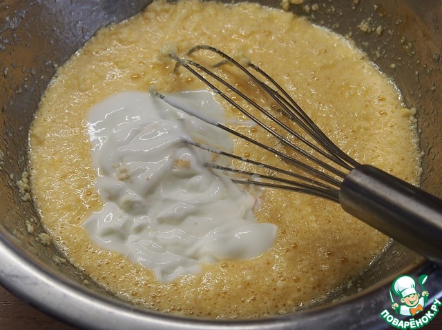 В масляно-яичную массу добавить белый йогурт, размешать.