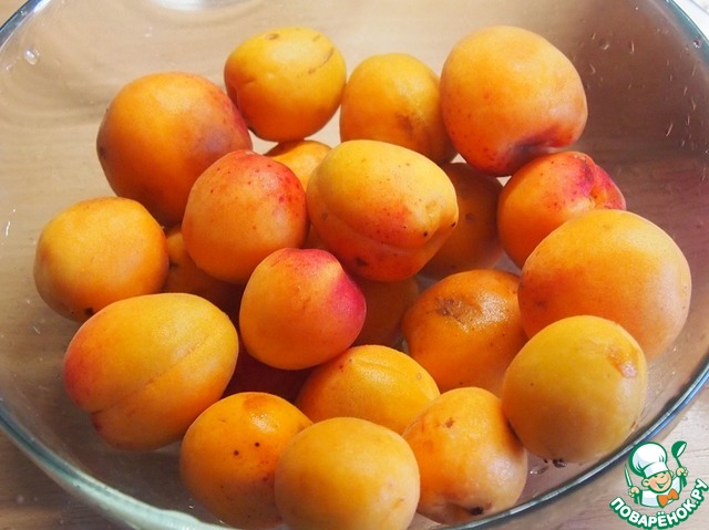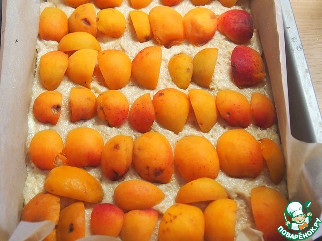 Сверху разложить разрезанные на четвертинки абрикосы. -