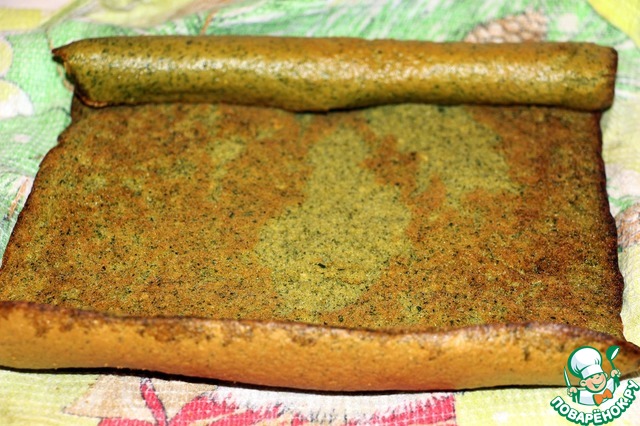 А фото, вставленное автором, очень сильно напоминает бисквитный рулет с чаем матча и белым шоколадом из блога Маши Селяниной, давний рецепт, она его выкладывала в году 2009 или 10. (Матча в выпечке как раз даёт такой цвет, как на фото в рецепте Автора)