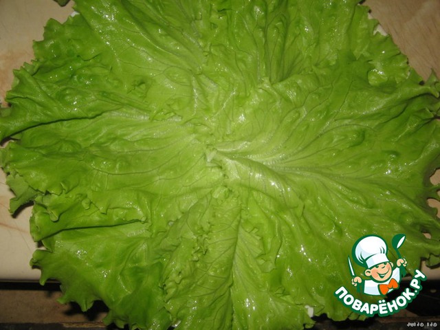 Листовой салат хорошо промыть, просушить и выложить на блюдо.