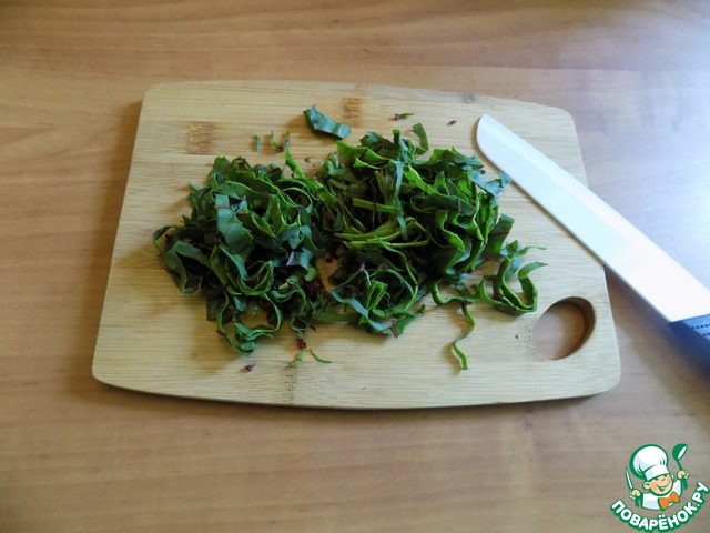 Листья мангольда промыла хорошо, обсушила и порезала вот таким образом.