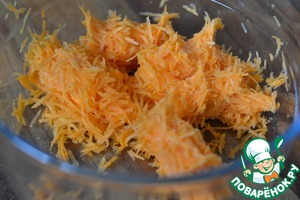 В большой миске смешать морковь, горошек, тертый сыр, лук с чесноком и булочку. Добавить яйца. Перемешать.