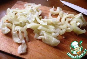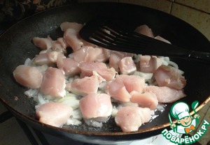 Куриное филе нарезать кубиками со стороной 1,5 - 2 см.