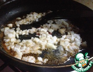 • В сотейнике растопить сливочное масло, выложить лук и обжарить до золотистого цвета.