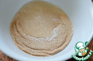 В 1 ст. л. теплой воды развести дрожжи и сахар,