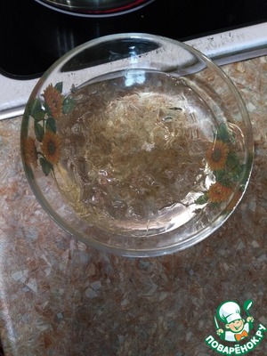Распускаем в горячей массе отжатый желатин. Отставляем остужать. -