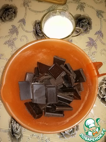 Сливки нагреваем (я делала это в микроволновке) и заливаем поломанный на кусочки шоколад. Перемешиваем, остужаем. -