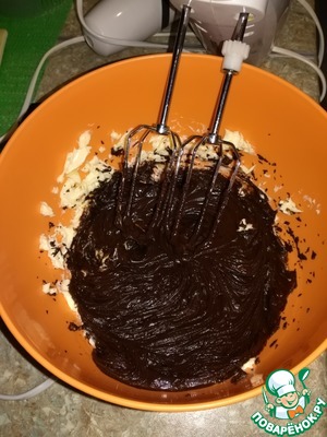 Взбиваем сливочное масло комнатной температуры. Вводим в масло 250 г. от шоколадной массы, взбиваем.