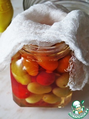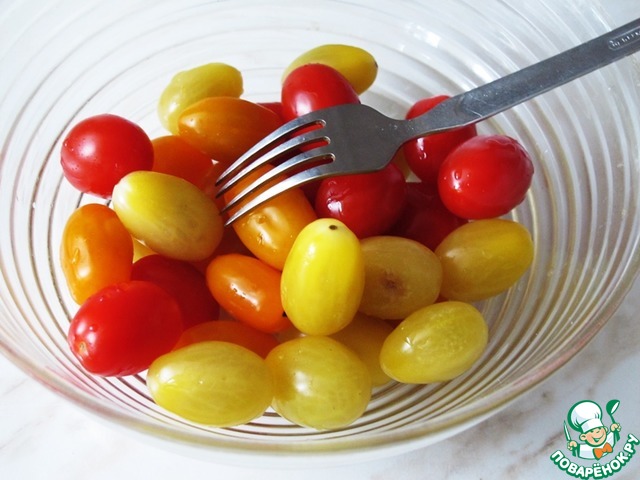 Вымыть черри и каждую хорошо наколоть острой вилкой. Это необходимо для того, чтобы томаты пропитались сиропом и сохранили форму.